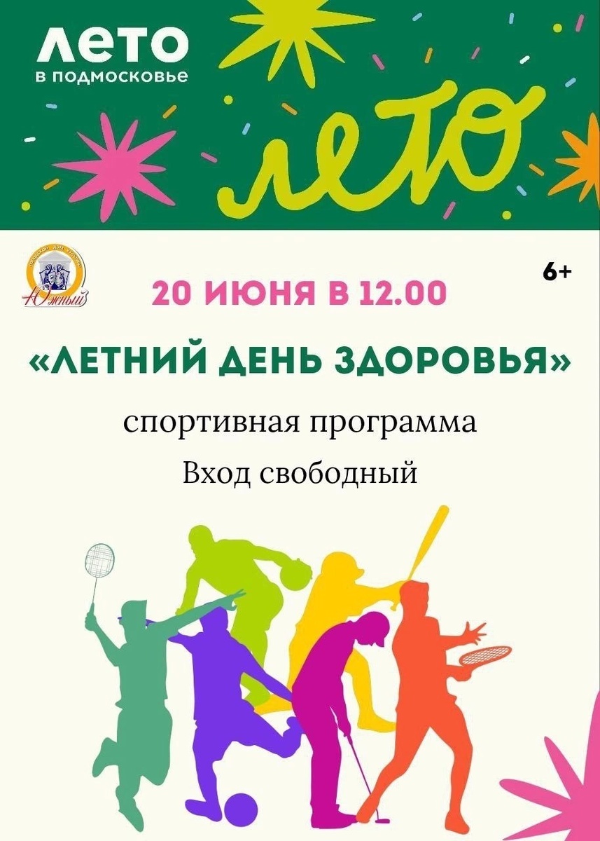 ✨ Дорогие друзья! Приглашаем вас принять участие в нашей спортивной программе "Летний день здоровья"⛹️ Ждём вас!💜 🚫 Возраст: 6+ 📆 20.06.2025🕒12:00 🏢 Городской дом культуры «Южный» 📍 г.о.Домодедово, мкрн.Барыбино, ул.Южная, стр1А 💰 Вход свободный❗️ ✅ Мероприятия Домодедово https://dzen.ru/id/66f10385cc4c5a16f7b5fb02 http://vk.com/domodedovo_events http://dzen.ru/domodedovo_events