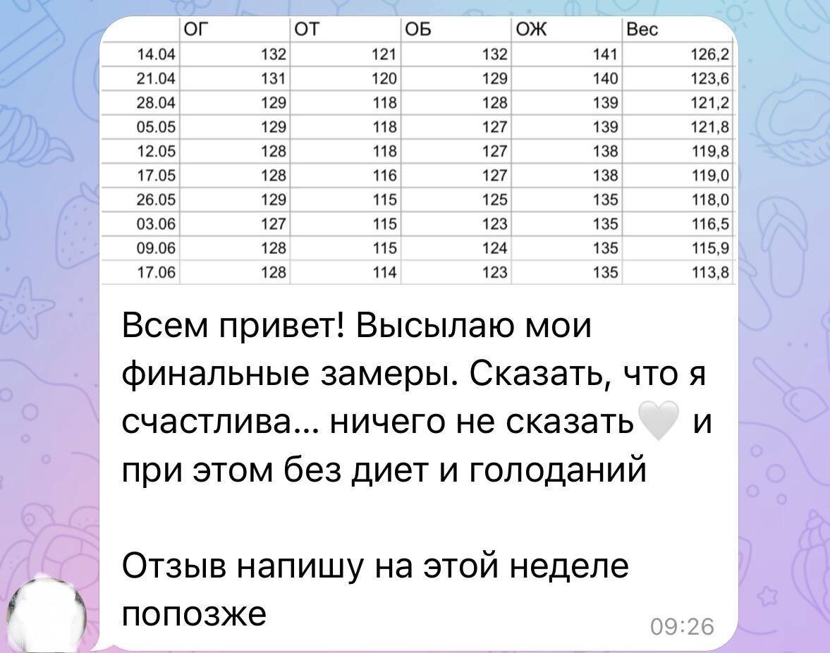 Курс "На стройность". Итоги Итак, завершился очередной поток моей групповой работы. Работа длилась 2 месяца: 🎉первый месяц основной, где я давала море информации и учила девушек выстраивать новые пищевые привычки. 🎉второй месяц (был экспериментальный) поддерживающий, где мы закрепляли знания. Впервые я решила предложить девушкам перейти на поддерживающий месяц и 80% меня поддержали. Как потом выяснилось, второй месяц просто необходим для закрепления всех знаний и именно по окончании второго месяца многие закончили этот курс без страха, что сорвутся. Результаты у всех разные (если мы говорим про цифры на весах), но в плане "разрыва шаблонов"- един. 📎Девушки научились есть ВСЁ без страха переесть 📎Научились насыщаться меньшими порциями и останавливаться, когда почувствовали сытость 📎Научились заботиться о себе и брать еду с собой 📎Осознали, почему раньше переедали и проделали огромную работу над ошибками, чтобы больше этого не повторять 📎Изменили свое отношение к "запрещенной е