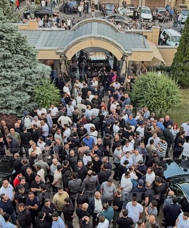 У дома российского бизнесмена Карапетяна в Армении собралось много его сторонников и родных, чтобы защитить от силовиков.