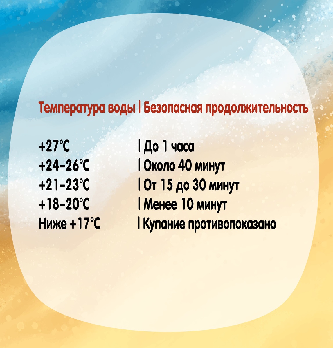Дорогие наши подписчики ! Для вас мы подготовили таблицу нормативов безопасного пребывания ребенка в воде различной температуры, чтобы