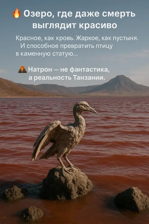 Гибельная красота озера Натрон. Это неприметное озеро расположено на границе Танзании и Кении в Африке. Оно бы так и оставалось неизвестным миру, если бы не работы ценителя дикой природы Ника Брандта. Его черно-белые фотографии превратившихся в камень птиц завораживают и притягивают взгляд. И хоть на них изображена сама смерть, поверить в это сложно — настолько неправдоподобно выглядят эти словно ожившие "статуи" пернатых. Известковые "скульптуры" Озеро Натрон никогда не славилось обилием жизни в его водах, несмотря на то, что находится в благоприятном субэкваториальном районе. Виной этому несколько природных факторов. Первый связан с естественной глубиной. Она не превышает трех метров, и вода в период засухи прогревается в отдельных местах озера до температуры +50–60°С. А второй фактор — это наличие солей кальция и натрия, которые превращают воды озера в губительную щелочную среду. Фактически водоем — это огромная лохань с растворенным в ней стиральным порошком. Концентрация этих сол