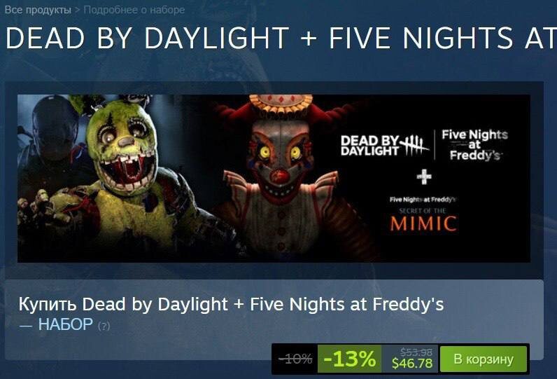 ❗️В Steam появился набор, включающий базовую игру + дополнение «Five Nights at Freddy's» + новую игру «FNaF: Secret of the Mimic» Стандартная стоимость набора 47 долларов. Цена меняется в зависимости от того, что из набора уже есть в вашей библиотеке 🔪 Подписаться | 🗞 Предложка | 🚀 BOOST #deadbydaylight #дбд #dbd #fnaf #dbdfnaf #фнаф
