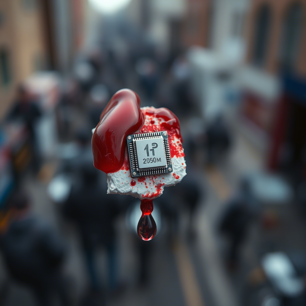 Старик что-то бормотал, благодарил. Ты не слышал. Запах. Резкий, химический, как горелая пластмасса, смешанный с медной пеной страха, шел от тебя. От чипа. Ты рванул прочь, не оглядываясь. Чип визжал не переставая, прожигая кожу холодным огнём. Дома, перед зеркалом в ванной. Дрожащими пальцами ты нащупал выпуклость за ухом. Кожа вокруг нее побагровела, горячая и пульсирующая. Ты выдавил из аптечки пластырь, пропитанный антисептиком.Боль, когда ты наклеил его поверх чипа, была нечеловеческой – будто в мозг вогнали раскаленный гвоздь. Ты сорвал пластырь через секунду... и увидел ЭТО.Микрочип, крошечный, серебристый, прилип к клейкой стороне.Оторвался? Сам? Под ним – маленькая, идеально круглая ранка. И сочится. Не кровь. Что-то темное, густое, маслянистое. И этот тошнотворный запах химического горелья.