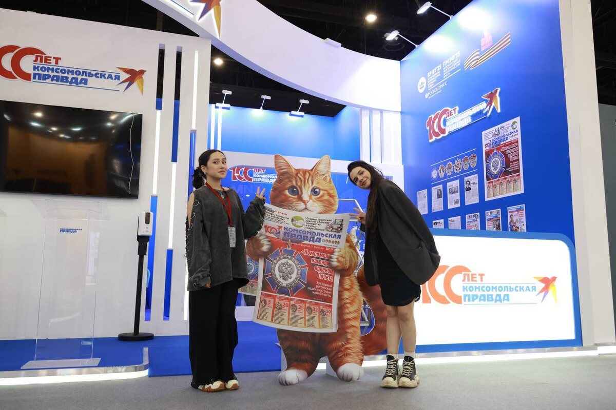 Там и мы будем! Стенд «Комсомольской правды» готов. Он юбилейный и познавательный, а ещё — рыжий и мурчащий.