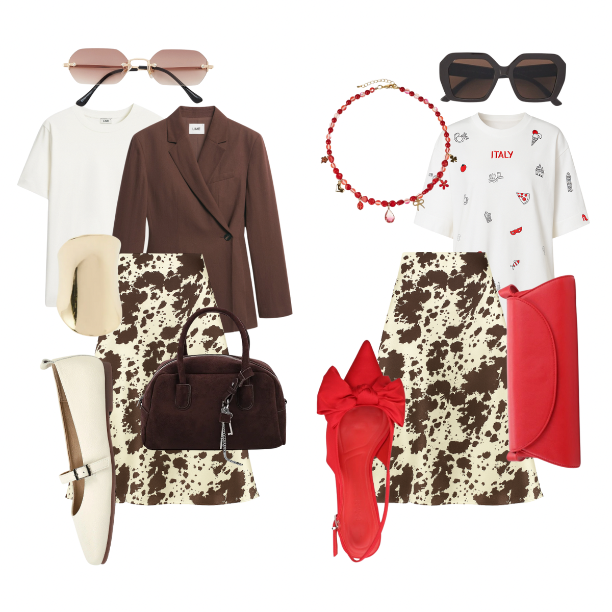 Коровий принт — это не просто модный каприз, а настоящий тренд, который может добавить изюминку в ваш гардероб. Но вот как его правильно стилизовать, чтобы не выглядеть как персонаж из комедийного фильма? Давайте разбираться! Итак, первое правило: лучше выбирать принт в черно-белых оттенках. Зачем? Чтобы избежать эффекта аляписто и колхозно. Мы же не хотим, чтобы наш стиль напоминал о летнем фестивале в деревне, верно? Если вы решили надеть юбку с коровьим принтом, то верх лучше выбрать однотонный — пусть это будет тоже черный или белый А что насчет обуви? Черный и здесь беспроигрышный вариант. Но если вам хочется немного поэкспериментировать и добавить образу легкости — выбирайте белые кеды. Это будет стильно и удобно, как раз для тех дней, когда нужно успеть и на работу, и на встречу с друзьями. Теперь про цветотипы: блондинкам и рыжеволосым девушкам отлично подойдут коричнево-белые оттенки. Этот принт подчеркнет вашу красоту и создаст уютный образ И главное правило — умеренно