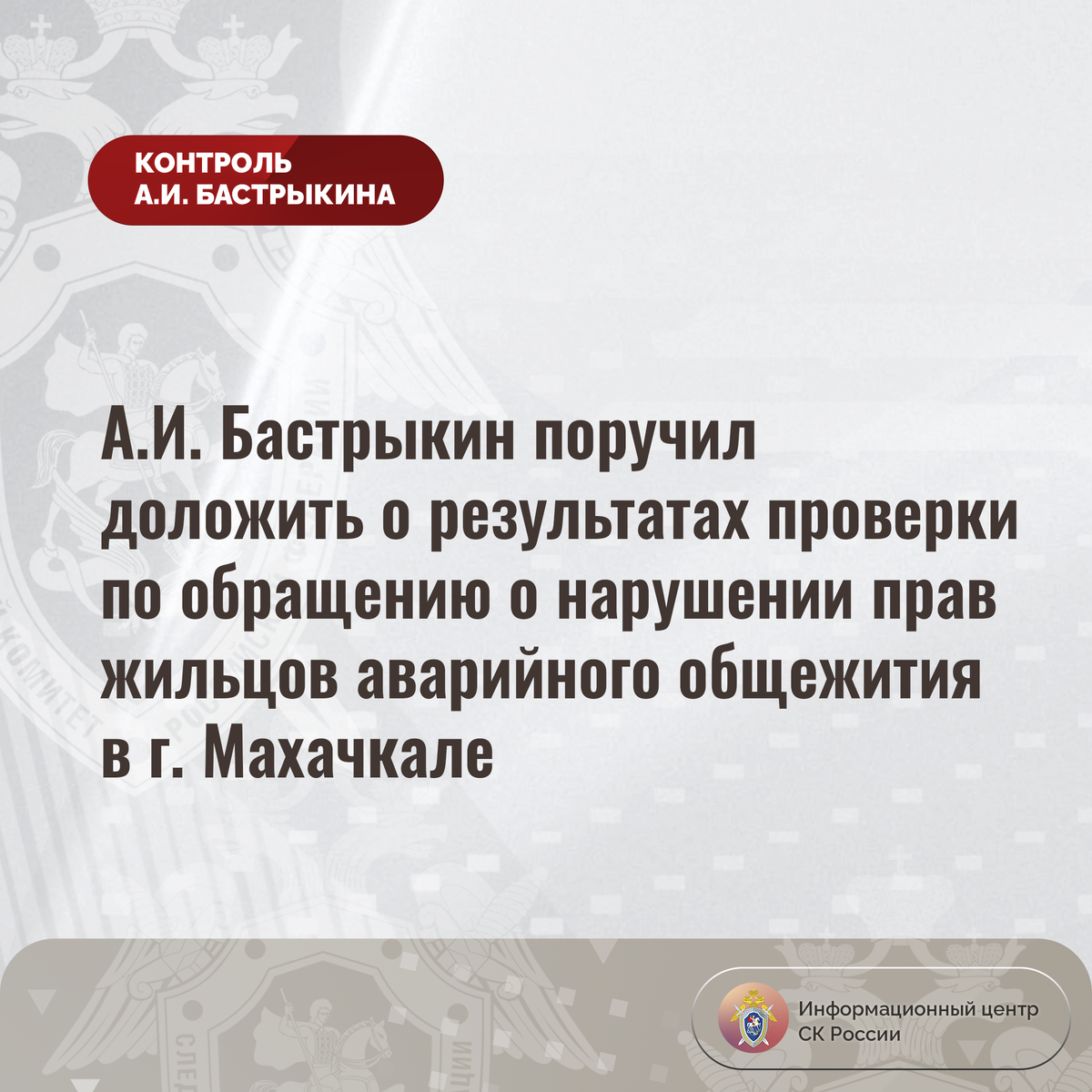 А.И. Бастрыкин поручил доложить о результатах проверки по обращению о нарушении прав жильцов аварийного общежития в г. Махачкале