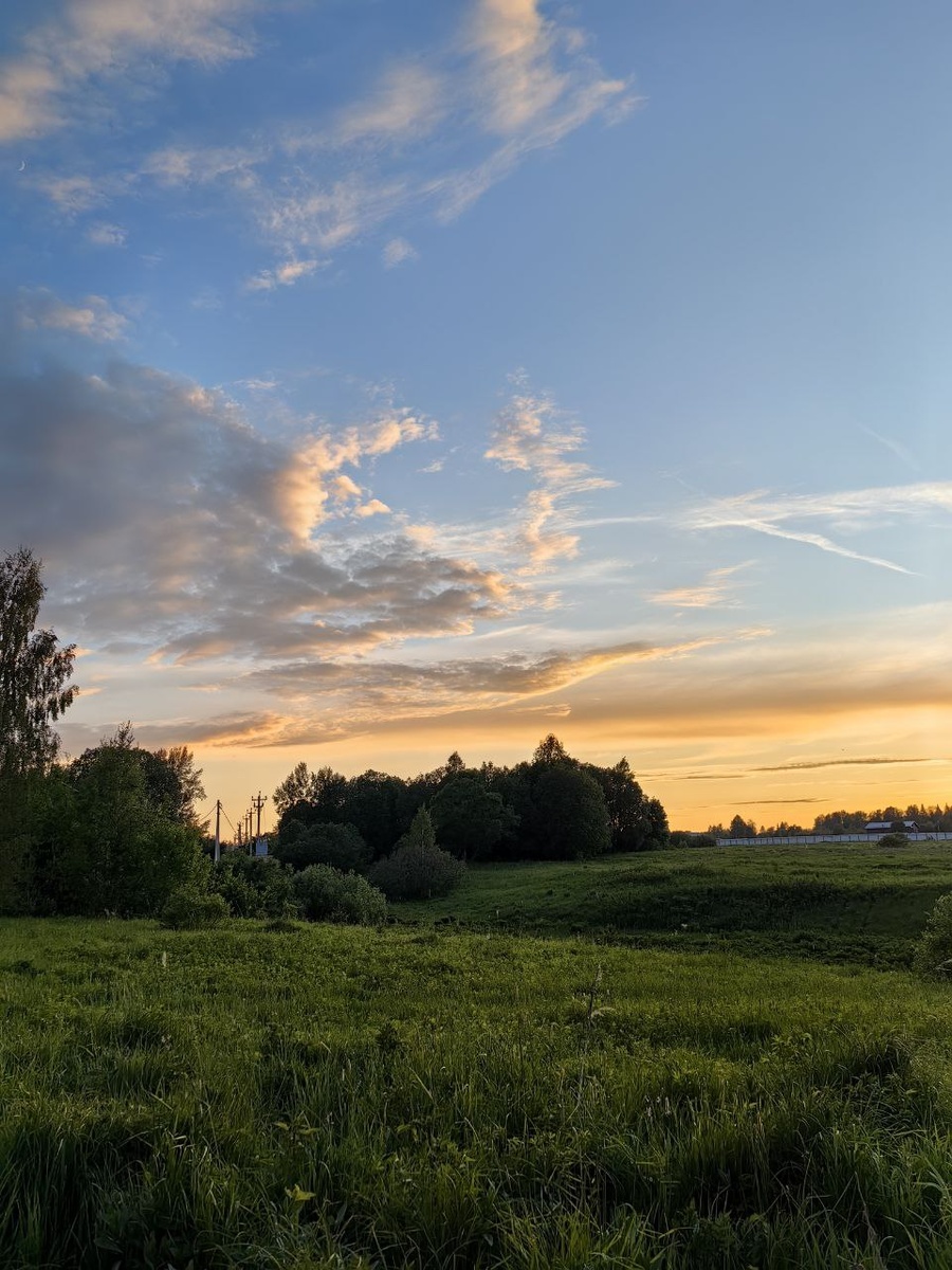 Желто-бежевые отсветы заката (Комарово, Клин) #sky #blue #sunset #reflections #beige #grey #yellow #clouds #rural #landscape #Komarovo #Klin #spring #May #небо #голубое #закат #отсветы #серые #бежевые #желтые #облака #сельский #пейзаж #Комарово #Клин #весна #май