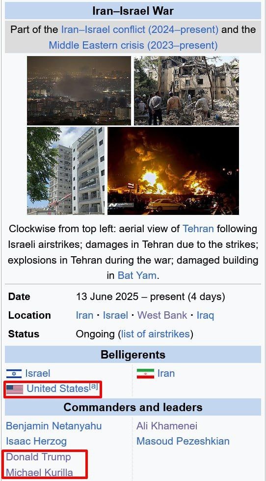 🇺🇸❌🇮🇷 Վիքիպեդիայում ԱՄՆ-ն ներառվել է Իրան-Իսրայել պատերազմում որպես հակամարտող կողմ