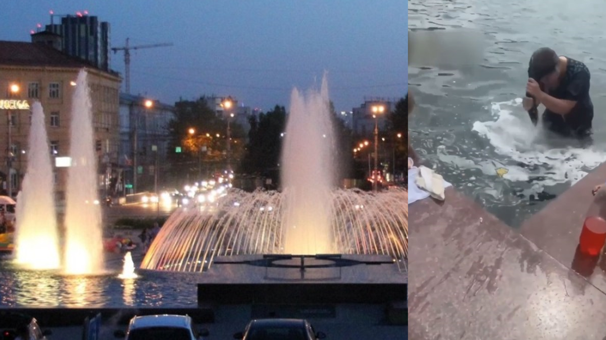 Цыгане помылись в главном фонтане Новосибирска с подсветкой