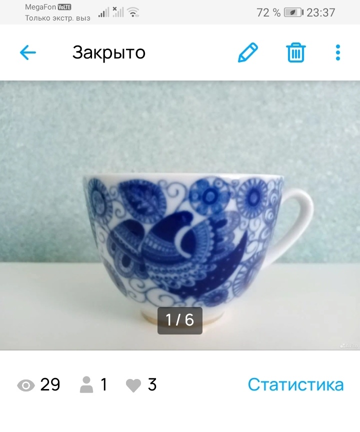 Давно я не подводила итоги по продажам на Авито, а зря. Села за отчёт и вновь душа запела. С марта по май был настоящий бум продаж из категории старинных вещей. А больше всего удовольствия я получаю именно от таких сделок. Причём, вовсе не потому, что это деньги "из воздуха". По большей части я кайфую от общения с людьми, которые интересуются историей и искренне ценят такие вещи. Среди них попадаются и настоящие коллекционеры, и любители, и у каждого своя история... А вот собственно эти вещи: 1. Чашка производства Ленинградского фарфорового завода (ЛФЗ). Когда-то её цена была 2 рубля 35 копеек😀, а в результате продана за 400 рублей. 2. Сахарница из набора, Вербилки. В наборе сохранилось ещё 5 чашек, но пока забрали только сахарницу. Цена продажи 900 рублей. 3. Шикарный советский графин, на дне красуется гравировка - 75 копеек. Уехал к своему покупателю за 900 рублей. 4. И, наконец, мой любимый лот - Бутылка Калинкин 1896 года. На бутылке красуется выпуклая надпись "Петербург, заявл