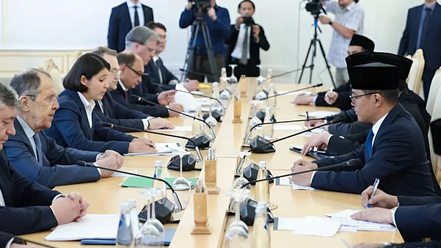 В Москве состоялись переговоры между министрами иностранных дел России и Индонезии Сергеем Лавровым и Сугионо. По итогам встречи они провели пресс-конференцию. Лавров отметил, что страны тесно сотрудничают на международной арене. «Рады, что Индонезия подключилась к БРИКС в качестве полноправного члена. Подчеркнули, что наша совместная работа и в этих рамках будет способствовать упрочению многополярных начал мировой политики и экономики»