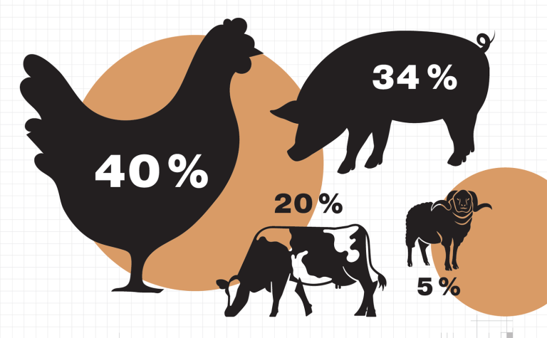 Сегодня курицу разводят по всему миру, и это один из главных источников животного белка для жителей Земли. По оценкам специалистов, к концу этого десятилетия мясо птицы составит более 40 % всего белка из мясных источников в рационе человека. Для сравнения, говядина займет порядка 20 % рынка, свинина – 34, баранина – 5 %. Популярность куриного мяса держится на двух факторах: дешевизне и диетической ценности продукта. Для производителей оно выгодно из-за соотношения конечного продукта и затраченного корма (по сравнению с мясом жвачных животных), а также коротким производственным циклом. На полки российских магазинов ежегодно попадает 46 млрд яиц. За год среднестатистический житель РФ съедает около 300 штук.