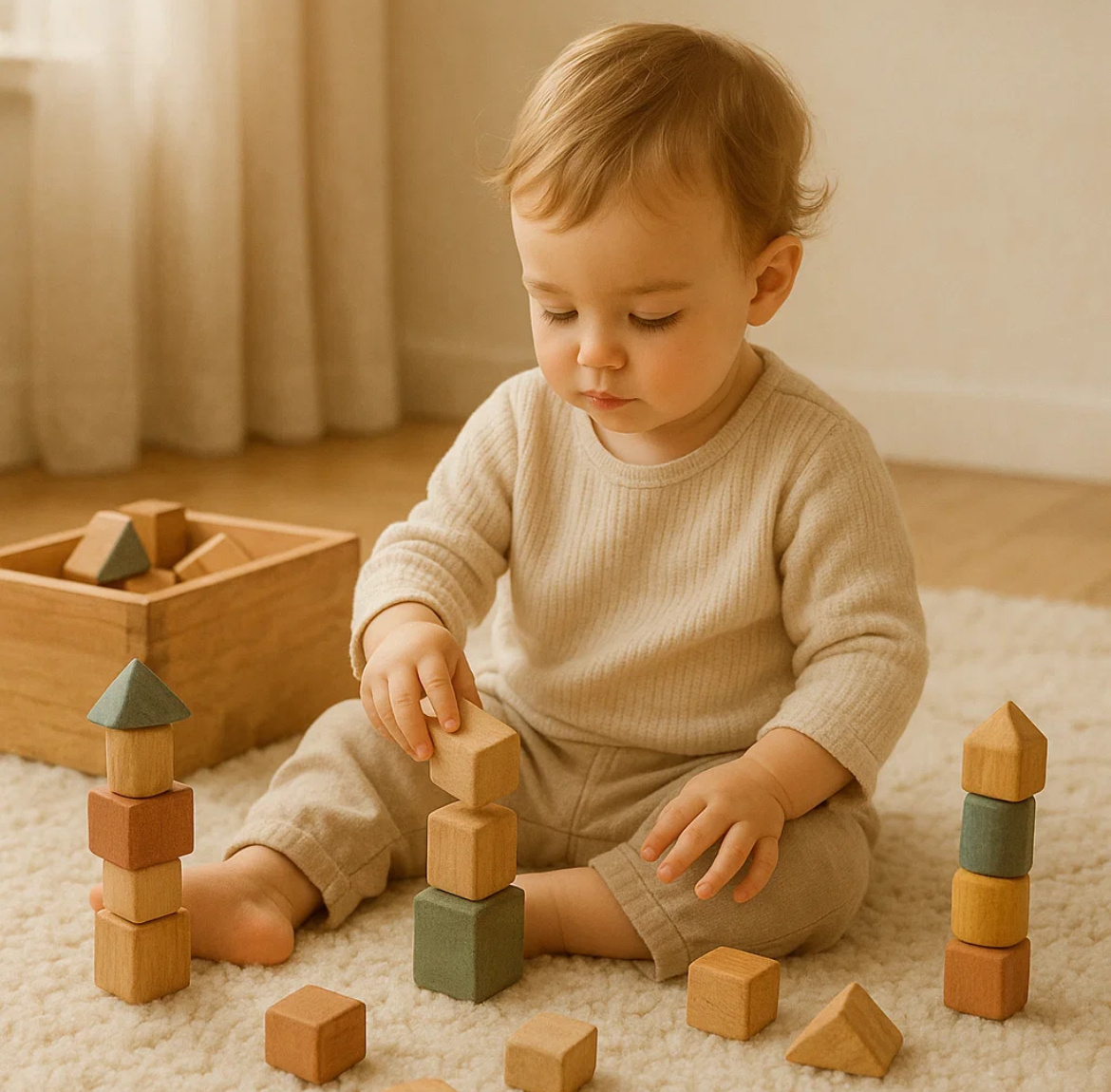 Простая игрушка или мощный инструмент развития? Деревянные кубики — это настоящая находка для родителей малышей от 6 месяцев до 6 лет. Их ценность подтверждена как Монтессори-подходом, так и современными нейропсихологами. Почему же кубики — must-have в каждом доме? Рассказываю! 1. Мелкая моторика и развитие речи Кубики стимулируют подвижность пальцев и кистей. А, как известно, развитие мелкой моторики напрямую связано с развитием речи. 2. Сенсорика и многоканальное восприятие Деревянные кубики — это и звук, и запах дерева, и приятная текстура. Малыш их крутит, облизывает, бросает — задействуются все органы чувств: зрение, слух, осязание, вкус и обоняние. 3. Координация и внимание Чтобы башня из кубиков не упала, нужно действовать аккуратно. Так формируется зрительно-моторная координация и тренируется сосредоточенность. 4. Причинно-следственные связи Уронил башню — услышал звук. Бросил в нее кубиком — она рассыпалась. Кубики помогают ребёнку понять базовые физические закономерности че