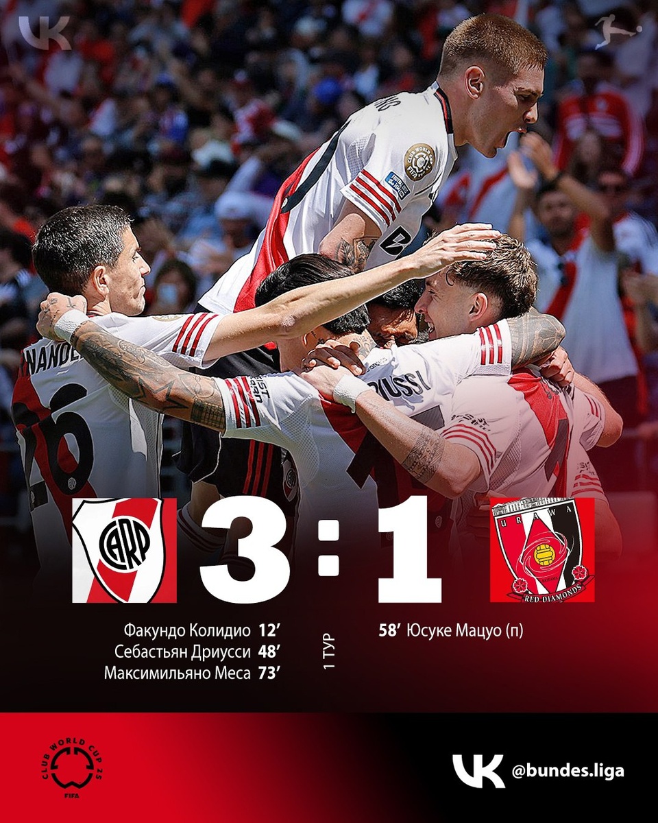 🔥 «Ривер Плейт» и «Урава Ред Даймондс» выдали яркую игру! Победу одержала аргентинская команда со счётом 3:1.