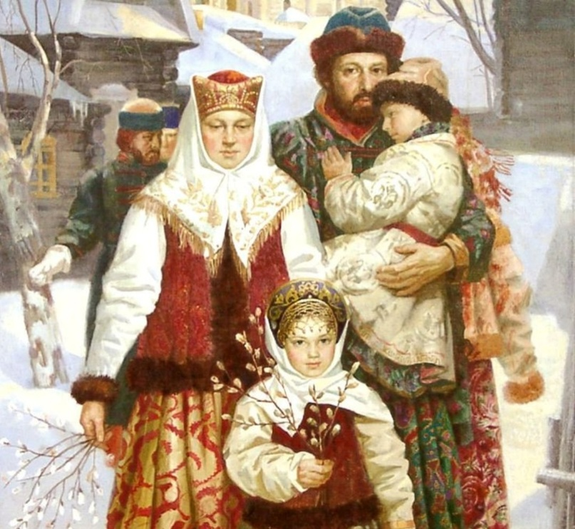 Изначально слово «семья» в древнерусском языке имело более широкое значение, чем в современном русском. В «Словаре русского языка XI–XVII вв.» отмечается, что в текстах этого периода «семья» могла означать не только группу родственников, но и весь хозяйственный комплекс, включая слуг, работников и даже имущество (Словарь, 1975). Например, в летописях встречаются упоминания о «семьях» в контексте переселения или управления хозяйством, где подразумевается весь дом, включая челядь.