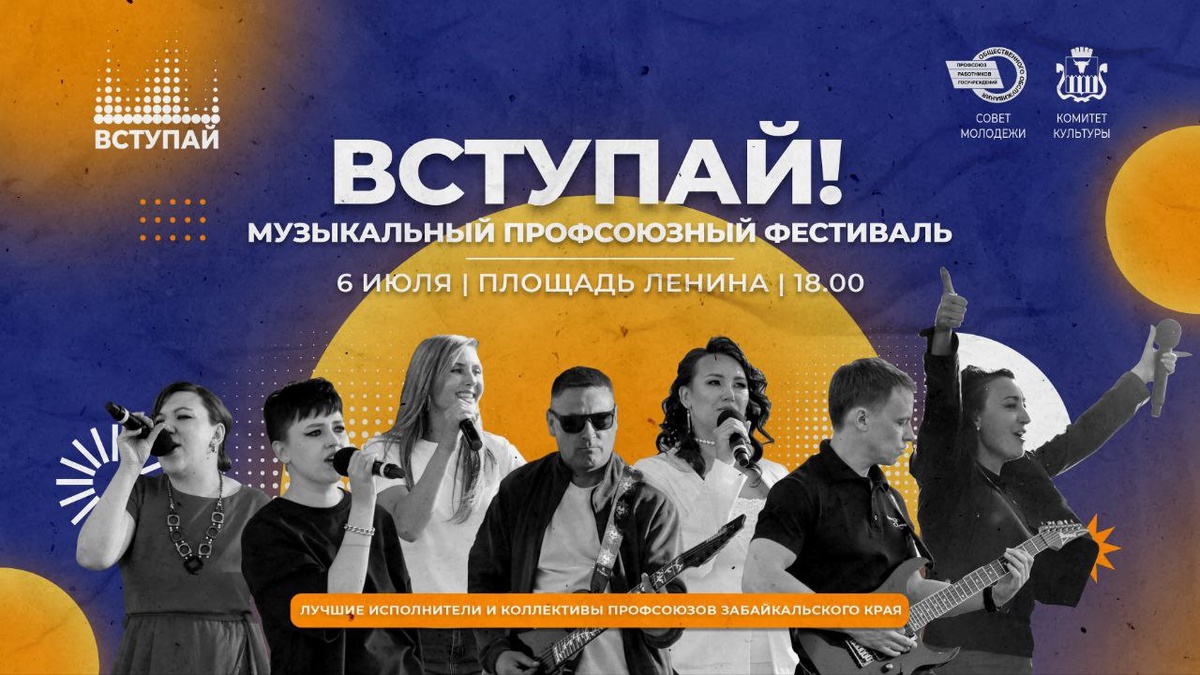 В Чите пройдет региональный профсоюзный музфест «Вступай!» Он объединит талантливых профактивистов со всего Забайкальского края. Сейчас организаторы принимают заявки на участие. На сцену допустят исключительно непрофессиональных музыкантов – любительские коллективы и сольных исполнителей. По всем вопросам участия можно звонить по телефону: 89144975506 В прошлом году фестиваль собрал около 80 исполнителей. На него приехали музыканты из Краснокаменска, Агинска, Маккавеево. #Афиша Предложить публикацию:@zabkulisye_bot