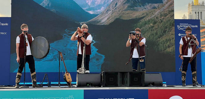 Республика Алтай стала лауреатом первой степени «За творческий вклад в фестивальную программу» на Международном туристическом форуме «Путешествуй!». Как сообщили в правительстве РА, культурную программу региона представила этно-группа «Тюрк Кабай». Всего на форуме было представлено более 100 региональных выставочных стендов общей площадью свыше 3 тыс. квадратных метров. В экспозиции участвовали 85 субъектов страны и восемь зарубежных стран. Наш регион представил свой новый туристический бренд «Алтай». Напомним, форум «Путешествуй!» прошел в Москве на ВДНХ с 10 по 15 июня. Организатор – Фонд «Росконгресс» при поддержке правительства РФ и Минэкономразвития.
