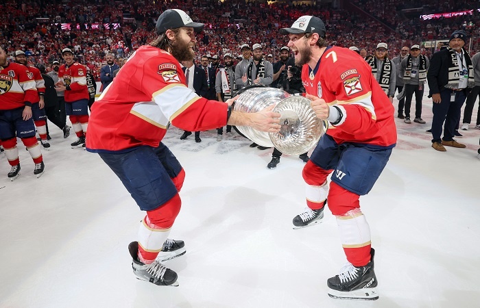 Москва. 18 июня. INTERFAX.RU - "Флорида" второй раз подряд стала обладателем Кубка Стэнли Национальной хоккейной лиги. Как и год назад, финальную серию она выиграла у "Эдмонтона". В шестом матче серии финала "Флорида" дома обыграла соперника со счетом 5:1. Счет в серии до четырех побед стал 4-2. Российский вратарь Сергей Бобровский отразил в шестом матче 28 бросков из 29. Вместе со своим соотечественником и партнером по команде защитником Дмитрием Куликовым он стал двукратным обладателем Кубка Стэнли. Автор единственного гола в составе "Эдмонтона" - российский нападающий Василий Подколзин. "Флорида" выигрывает трофей второй раз, до этого она дважды (1996, 2023) доходила до финала. "Эдмонтон" - пятикратный чемпион Кубка Стэнли (1984, 1985, 1987, 1988, 1990). В 2006 и 2024 она проигрывала в финальных сериях. Чаще всех Кубок Стэнли выигрывал "Монреаль" - 24 раза.