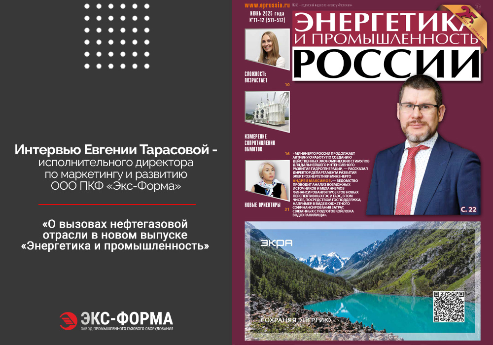 В июньском номере отраслевого авторитетного издания «Энергетика и промышленность» вышло интервью с заместителем исполнительного директора по маркетингу и развитию ООО ПКФ «Экс-Форма» — Евгенией Тарасовой.