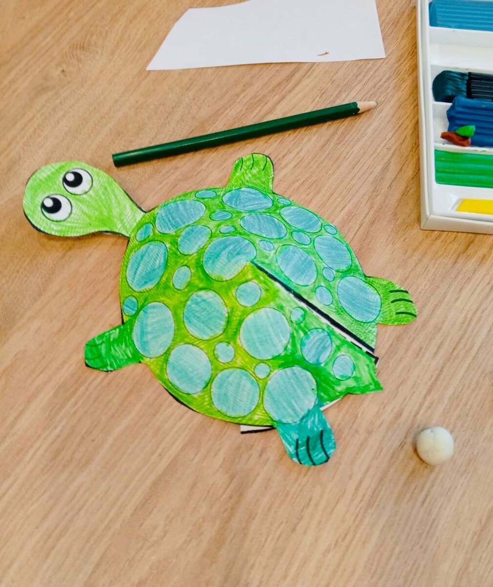 В моем семейном центре «Оберег» филиал «Бутово» прошло творческое занятие с детьми по изготовлению объемной аппликации «Весёлые черепашки». Из бумаги при небольшом старании и умении совсем несложно изготовить множество самых разнообразных поделок. Благодаря интересной и в то же время простой технологии создания аппликации, каждая работа получилась яркой и красочной. Занятия по конструированию из бумаги помогают закрепить и расширить навыки работы с бумагой, правила работы с ножницами, клеем, развивать мелкую моторику, глазомер, воспитывать работоспособность, умение доводить начатое дело до конца, инициативность и самостоятельность. Ребятам было предложено украсить черепаху узором, проявив свою фантазию, поэтому у каждого получилась уникальная работа. Ребята узнали новое о жизни черепах, особенностях их строения, питания.