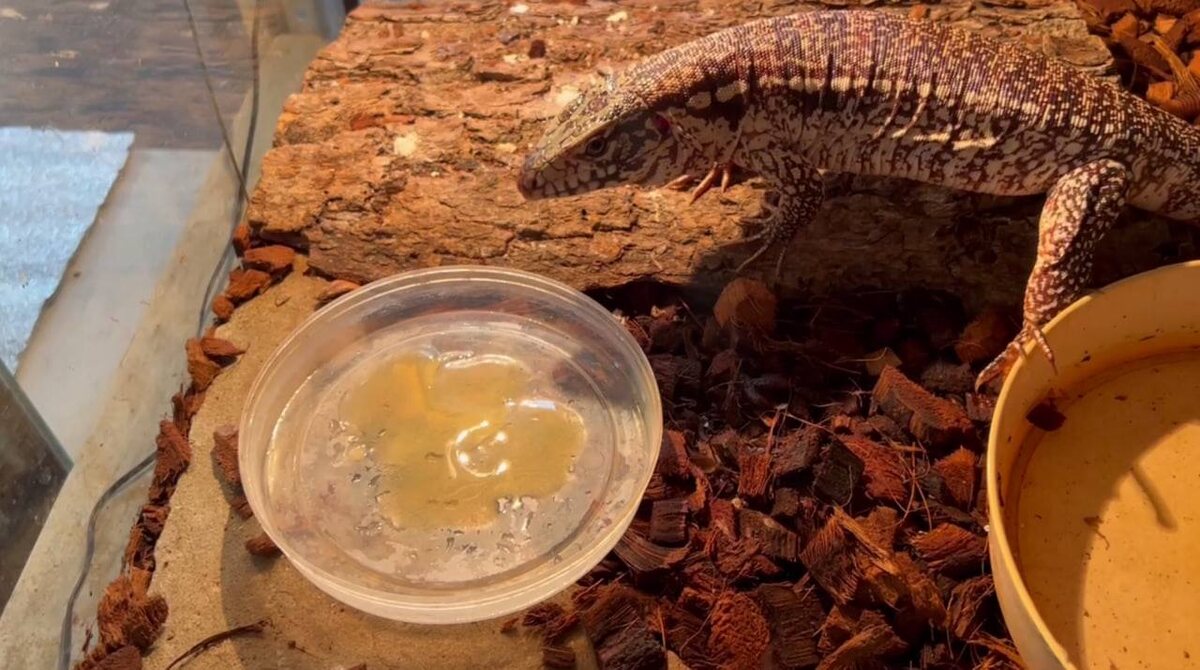 ❗️В Калининградском зоопарке поселились красные тегу «Вы же помните, что мы обещали вам этих роскошных ящеров, и вот они уже сидят в карантинном помещении Террариума ногами прямо в тарелке и поедают мёд! У нас совсем молодая пара — им около года — самец и самка. Самец дерзкий, но пугливый, самка — спокойная, лояльная к людям», — рассказали в пресс-службе. Отметили, что с возрастом оба станут ярко-красными и смогут дорасти до 140 сантиметров. Фото: Telegram-канал Калининградского зоопарка. КАСКАД 📺 Прислать новоcть