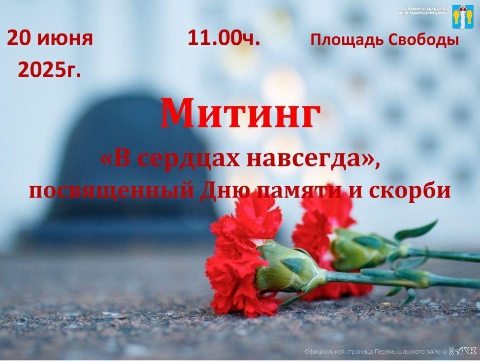 🕊 20 июня в 11:00 на площади Свободы села Перемышль состоится митинг "В сердцах навсегда", посвященный Дню памяти и скорби. #ДеньПамяти