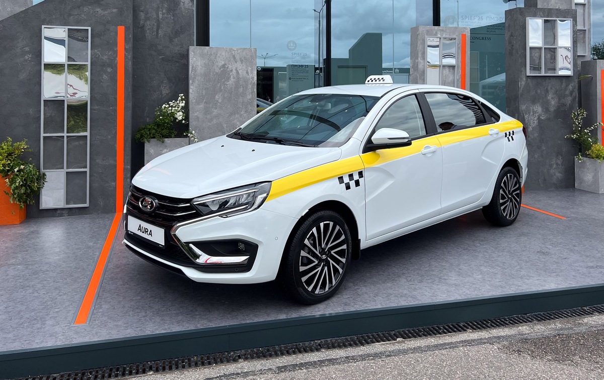 На Петербургском международном экономическом форуме был показан седан Lada Aura, переоборудованный для работы в такси. Его кузов окрашен в белый цвет, вдоль борта идет желтая полоса с черными «шашками». Ожидалось, что автомобиль представят в упрощенном оснащении, но без ущерба комфорту пассажиров или надежности автомобиля. В частности, отделка салона ожидалась тканевая, а экран мультимедийной системы – меньшего размера. Но на форуме автомобиль оснащен кожаным салоном в версии с двумя задними подголовниками и с обогревами задних сидений. Надо полагать, что автомобиль для такси ничем кроме окраски не отличается от обычной версии. Lada Aura оснащается двигателем 1.8 мощностью 122 л.с. и 170 Нм. До 100 км/ч седан разгоняется за 12,5 секунды, потребляя в смешанном режиме 7,8 литра бензина на 100 км пути. Стоимость Lada Aura на сайте АВТОВАЗа составляет от 2 599 000 рублей, возможна скидка в размере до 550 000 рублей.