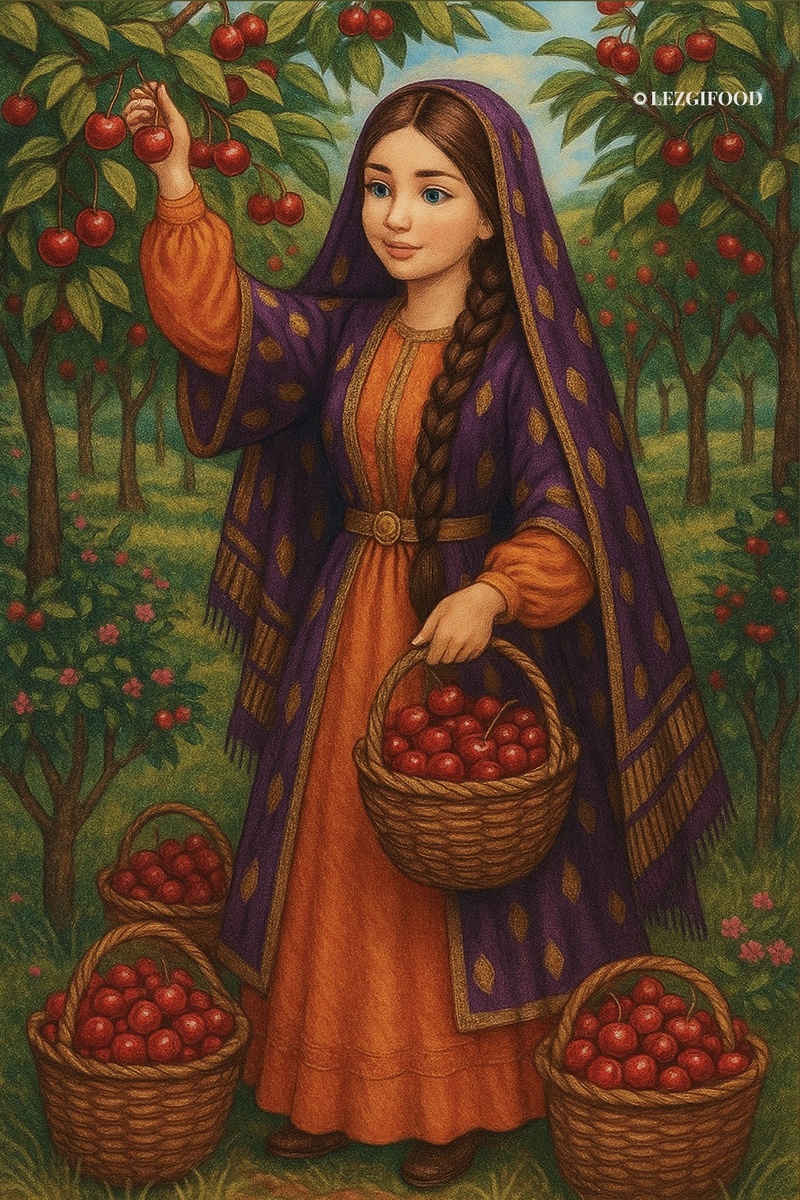 КIару 🍒 ПIинийрин сувар. Праздник черешни. ⠀ Один из самых красивых праздников лезгин-самый вкусный и красочный летний праздник, проводился когда наступает сезон созревания черешни. Традиционно праздник проводился в Сулейман- Стальском районе, так как здесь выращивали самые большие урожаи черешни. ⠀ В местности «КIару» росли только черешневые деревья, и почти у всех жителей сёл был свой черешневый сад. Когда черешня поспевала, сюда съезжались табасаранцы, агулы, рутулы, лезгины, все соседние народы, у которых не росла (или плохо росла) черешня. Они арендовали на сезон черешневые сады и располагались со своими семьями в этих садах. ⠀ Сезон сбора урожая проходил весело, с угощениями, скачками, выступлениями канатоходцев, люди отвечали друг другу в стихотворно- шуточной форме, в сборе участвовали и взрослые и дети. ⠀ В селения, где проводились праздничные мероприятия, спускались жители горных селений, где черешня не росла. ⠀Приехавшие гости размещались в садах. Каждое приехавшее семейст
