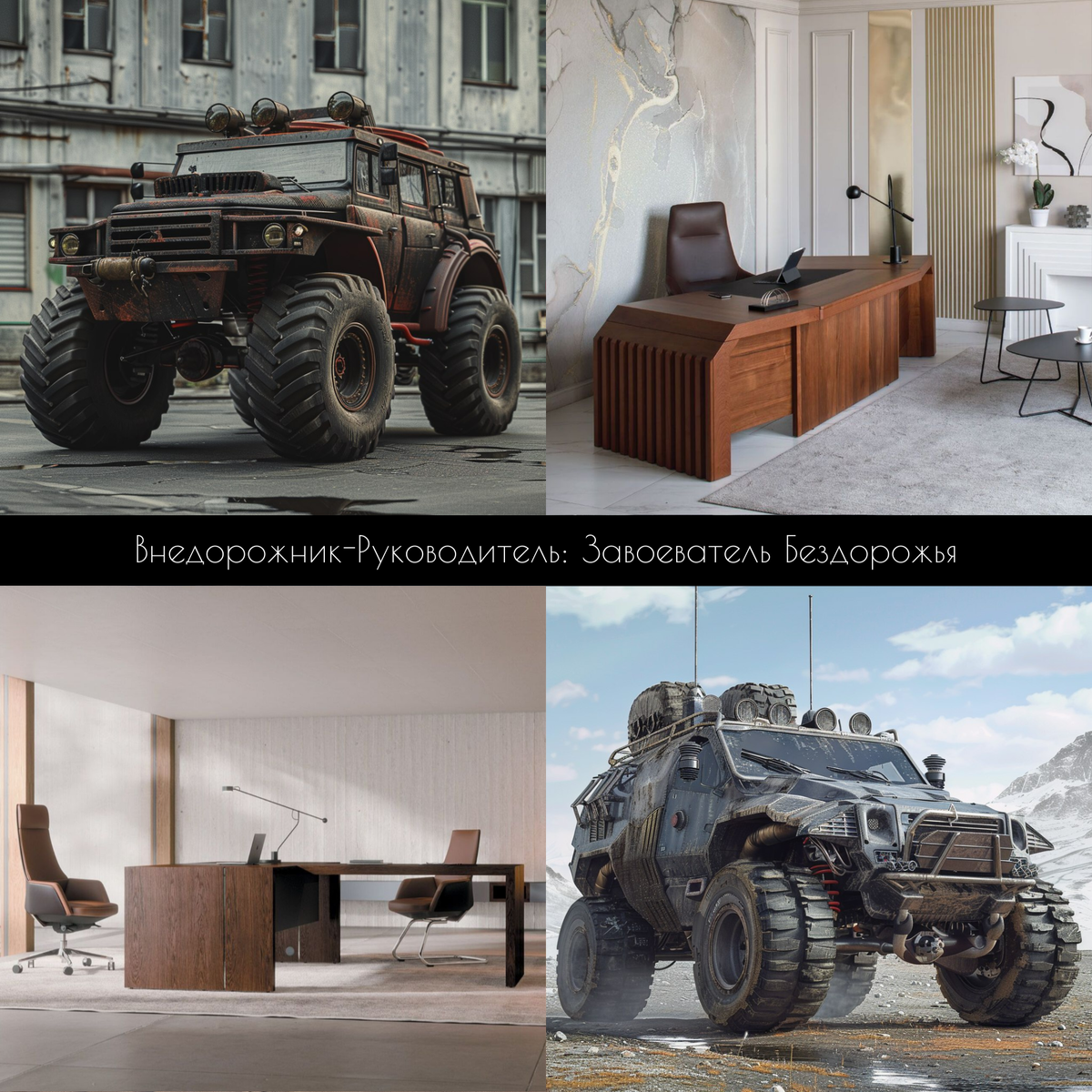 ● Интерьер: Просторный, функциональный, но без излишеств. Кресла из прочной, но комфортной кожи, способные выдержать любые "тряски". Вместо стола — большая, устойчивая поверхность, на которой можно разложить карты, схемы и проекты, которые, кажется, вот-вот выведут компанию на новую территорию.