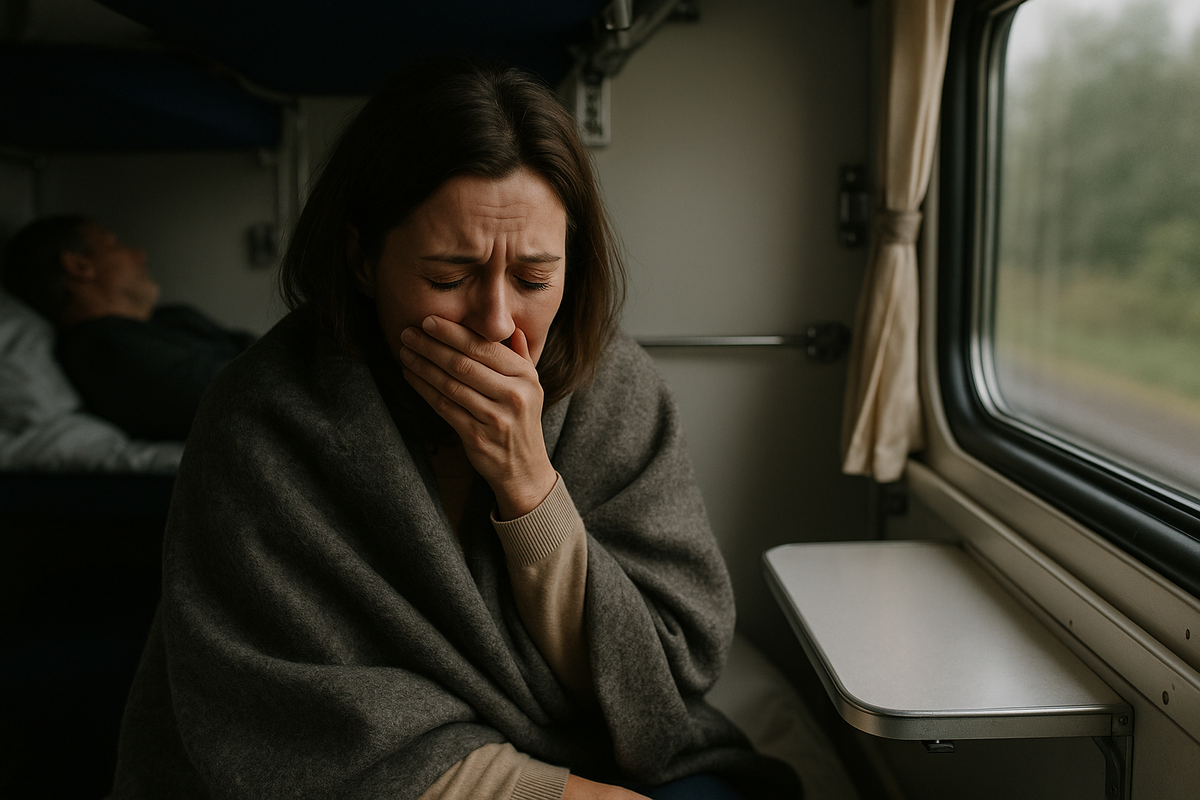Ночью, когда вагон затих, она снова заплакала. Слёзы были немыми, почти невидимыми, но дыхание сбивалось, и всё тело дрожало. Она пыталась сдержаться, но не могла. Давила себя руками, сжималась, пряталась в подушку — как будто прятала саму боль. Ей казалось, что плач её — это неудобство для других. Что она мешает. Что нарушает чей-то покой. Особенно того угрюмого мужчину напротив. Он, наверняка, всё слышал. И ненавидел её за это.