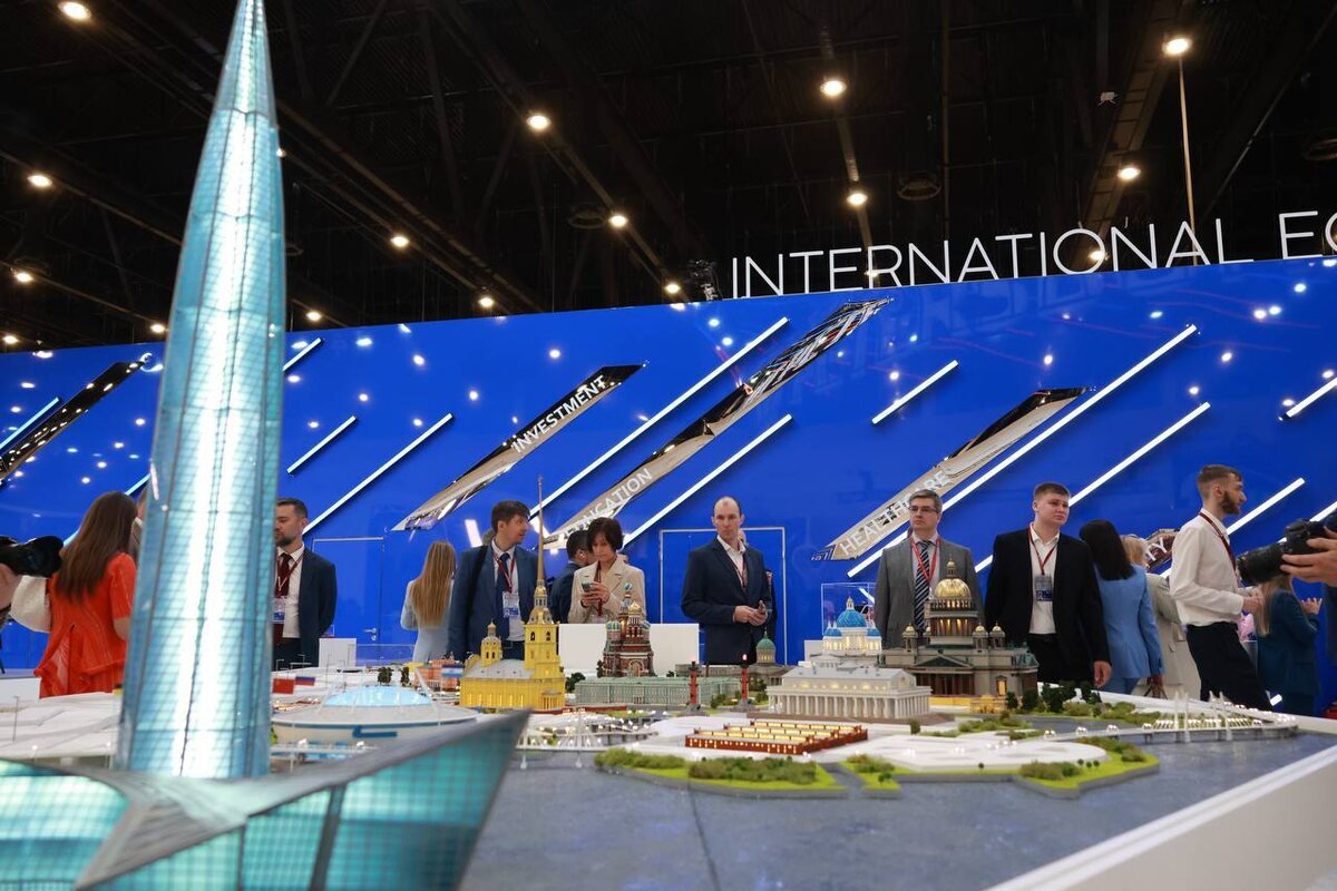 На стенде Северной столицы представлен интерактивный макет, на котором можно рассмотреть главные архитектурные строения и ключевые объекты инфраструктуры города.
