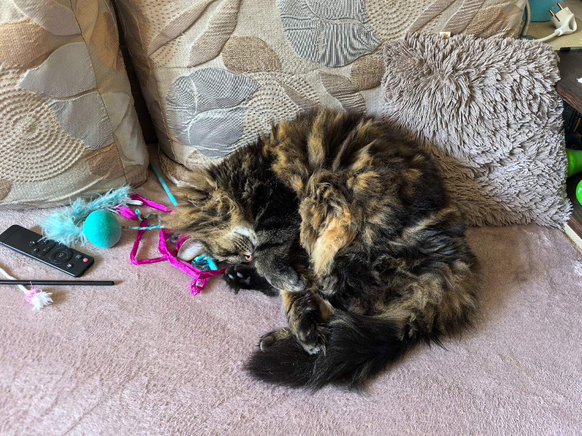Всем привет! С вами Кузя Кусалочкин! Сегодня я вам пожалуюсь на пылесос и на хозяина, а ещё покажу, как я сидел в новой коробочке. Утро началось вчера не с паштета, а с красной рыбки. Хозяину делали бутерброд и салат. Ну и мне досталось (в противном случае я бы устроил им концерт Шерстаковича). Хозяйка дала мне маленький кусочек, очень вкусно было. А потом ещё поел паштетик. Проводил хозяина на работу, всё, закончились те длинные выходные. А сам пошёл спать: Решил в этот раз поспать на большом диване. А потом переместился в новую коробку: И тут пришла хозяйка со своей пылесосиной. Я посмотрел на это всё и ушёл подальше. Решил пойти полежать на хозяйкином стуле: А это уже хозяйка всё убрала и хотела сесть на свой стул: Но потом поняла, что будет работать стоя (по одному моему взгляду). Через время пожалел хозяйку и ушёл лежать на балконе: Вечером хозяин вернулся, мы с ним поиграли немного. А потом я его пытался выгнать из-за компьютера. Я всегда его выгоняю, не нравится мне. О, кстати