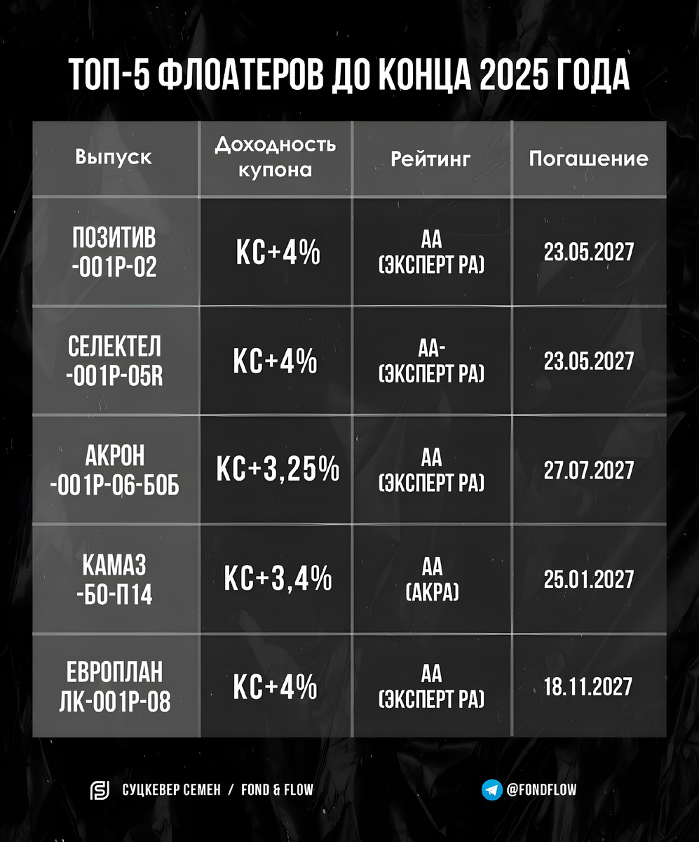 ⚡Флоатеры снова в игре? ТОП-5 доходных облигаций на фоне нестабильности, дефолтов и санкций. Быстрое снижение ставки откладывается?