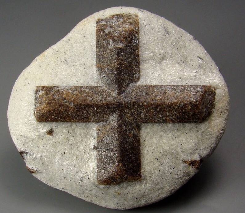 Есть у андалузита и ещё один «младший брат» - ставролит, когда в горной породе минерал образовывает собой форму креста.