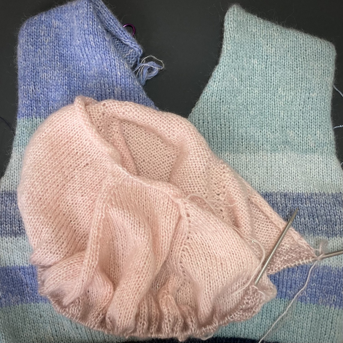Сейчас у меня параллельно два плечевых изделия в работе, за исключением совместных проектов ☺️ Загорелась связать дачные наряды и остатки пряжи пустить в дело. Вяжу жилет в оттенках синих полосками и кофточку в розовых оттенках, но блоками. Что из этого получится узнаем наверное в июле 😉 Я раньше так не вязала, но жилет довольно объемный и брать с собой неудобно, поэтому начала вязать кофту. И я уверена, что их довяжу до осени или раньше 😁