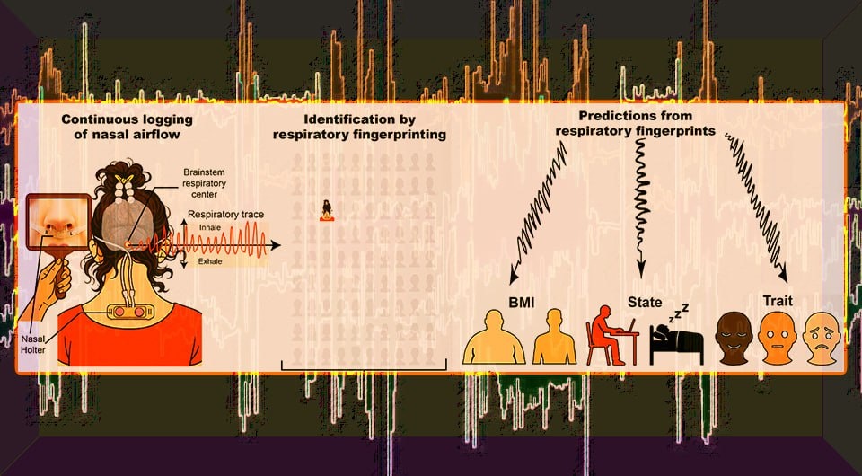 Исследование также показало, что разные дыхательные паттерны связаны с циклами сна и бодрствования, симптомами депрессии, индексом массы тела. То есть мониторинг дыхания может стать неинвазивным способом диагностики различных недугов. А коррекция дыхания – новым методом лечения. Это не говоря уже о том, что дыхание может служить надежным биометрическим идентификатором, который сложнее подделать, чем голос.