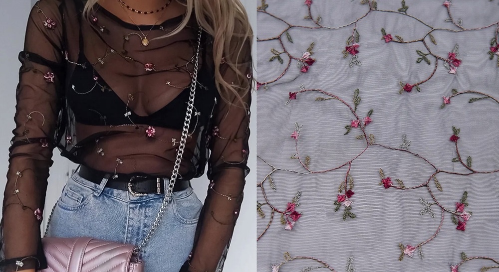 Представьте себе тонкую, почти невидимую сетку, на которой вышит красивый узор. Это может быть растительный орнамент, геометрические фигуры или даже абстрактные мотивы. Особенно эффектно выглядит чёрная вышивка на чёрной сетке. Такой контраст создаёт глубокий многослойный эффект, который притягивает взгляд и придаёт изделиям особую утончённость и стиль.