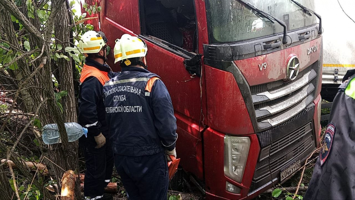 В пресс-службе министерства общественной безопасности Челябинской области добавили, что улетевший в кювет большегруз протаранил растущие там деревья, из-за чего его кабина деформировалась, а водитель оказался заблокирован.