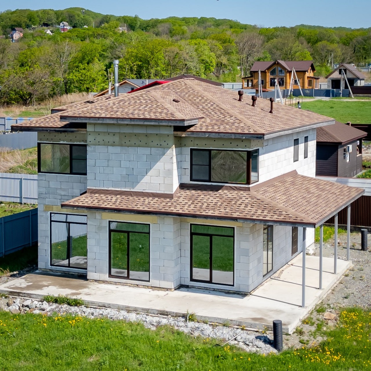 Продаётся дом! Пять спален и три санузла - для тех, кто ценит пространство СМС-03 | Общая площадь: 229 м² | Полезная площадь: 185 м² Участок 10 соток, центральный водопровод, забором с откатными воротами. Установленный камин в подарок! Один из самых популярных проектов, когда нужно построить дом для большой семьи. Архитектурно - простой, зато внутри много места, комнат и вариантов планировки. Мы уже реализовали несколько таких домов, и каждый адаптировали под запрос конкретной семьи. Где-то добавляли кабинет, где-то делали готовый интерьер, где-то сдавали дом полностью под ключ. Планировка: 1 этаж: • Кухня-гостиная - просторное место для семейных ужинов, праздников и уютных вечеров; • Терраса - большая, удобная для круглогодичного использования: зона отдыха, обеденная область, качели — как вы захотите; • Спальня - можно использовать, как гостевую комнату; • Санузел, кладовая и техническое помещение - всё на своих местах. 2 этаж: • Четыре полноценные спальни - с гардеробной зоной