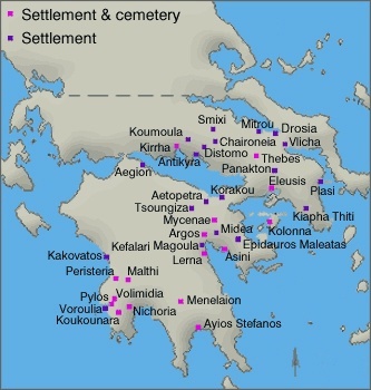 Среднеэлладские памятники расположены по всему Пелопоннесу и центральной