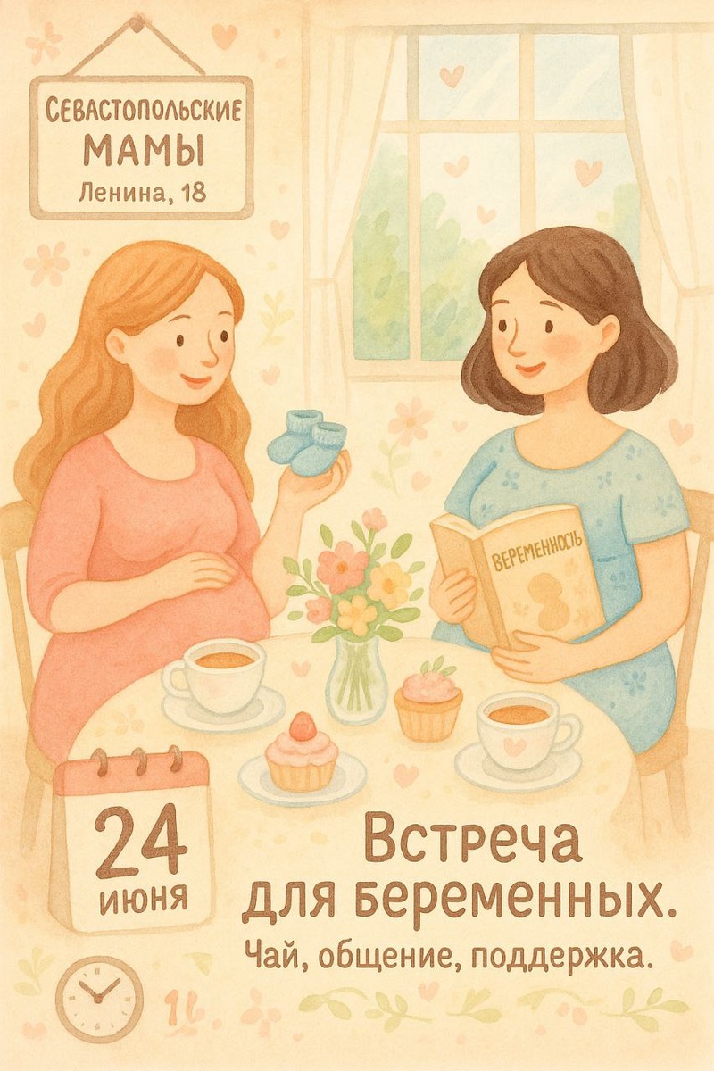 Анонс встречи для беременных 📅 24 июня в 11:00 📍 Офис "Севастопольские мамы" (ул. Ленина, 18) Приглашаем будущих мам на уютные посиделки за чашкой чая! 🌸 В теплой атмосфере мы сможем обсудить: 🔹 Беременность и подготовку к родам 🔹 Роды и пребывание в роддоме 🔹 Про младенцев и их особенности 🔹 И любые другие темы, которые волнуют именно вас ⏳ Продолжительность: 1,5 часа 🎟 Количество мест ограничено Чтобы забронировать место, пишите в личные сообщения @veronika_savina Ждем вас для душевного общения и полезных разговоров! 💖 ______________ 💦Тут интересное про мам и младенцев 💦 ГИД для МАМ по ГВ 🤱 АНО "Мама"