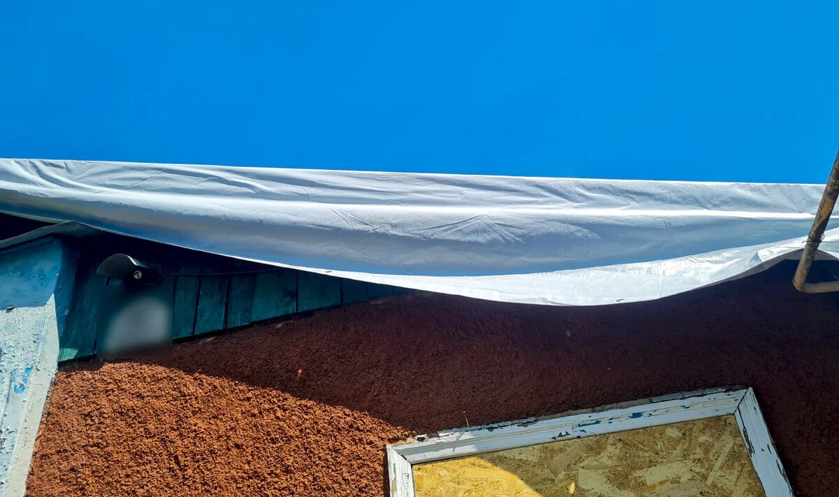 Столкнулась она с такого же рода помощью и при ремонте повреждённого жилья. Вроде бы и пришли представители местных властей, предложив составить заявку на восстановление поврежденного жилья. Но по факту заявку передали благотворителям, которые вместо шифера прикрыли поврежденную крышу тентовой плёнкой, и то так, что первый же ветер может её сорвать. А в акте при этом указано: пять килограмм гвоздей, четыре балки, 15 досок. Люди, закреплявшие плёнку, даже спрашивали у Елены доски – своих у них не было. Разница между написанным и сделанным говорит сама за себя.