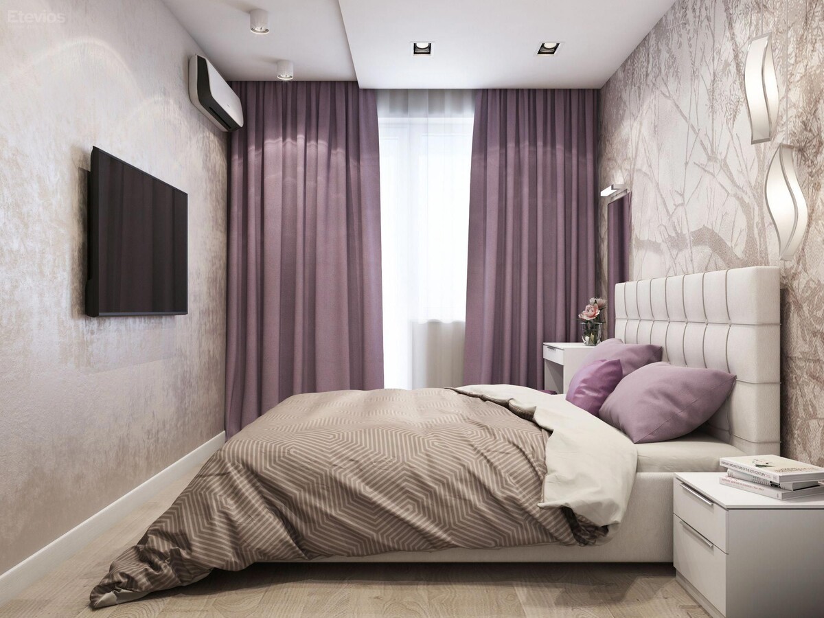 - Акценты допускаются, но точечно: одна яркая стена или текстиль (например, изголовье кровати или шторы).