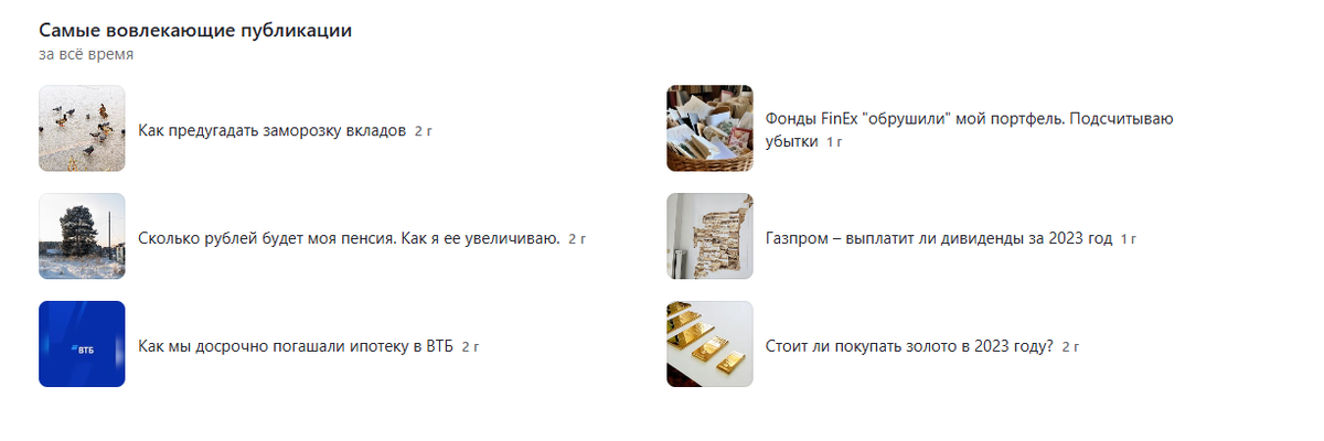 Оказалось, что вечнозелёный контент — не миф. У меня тоже есть свой ТОП-6 и эти статьи можно увидеть на скрине ниже.