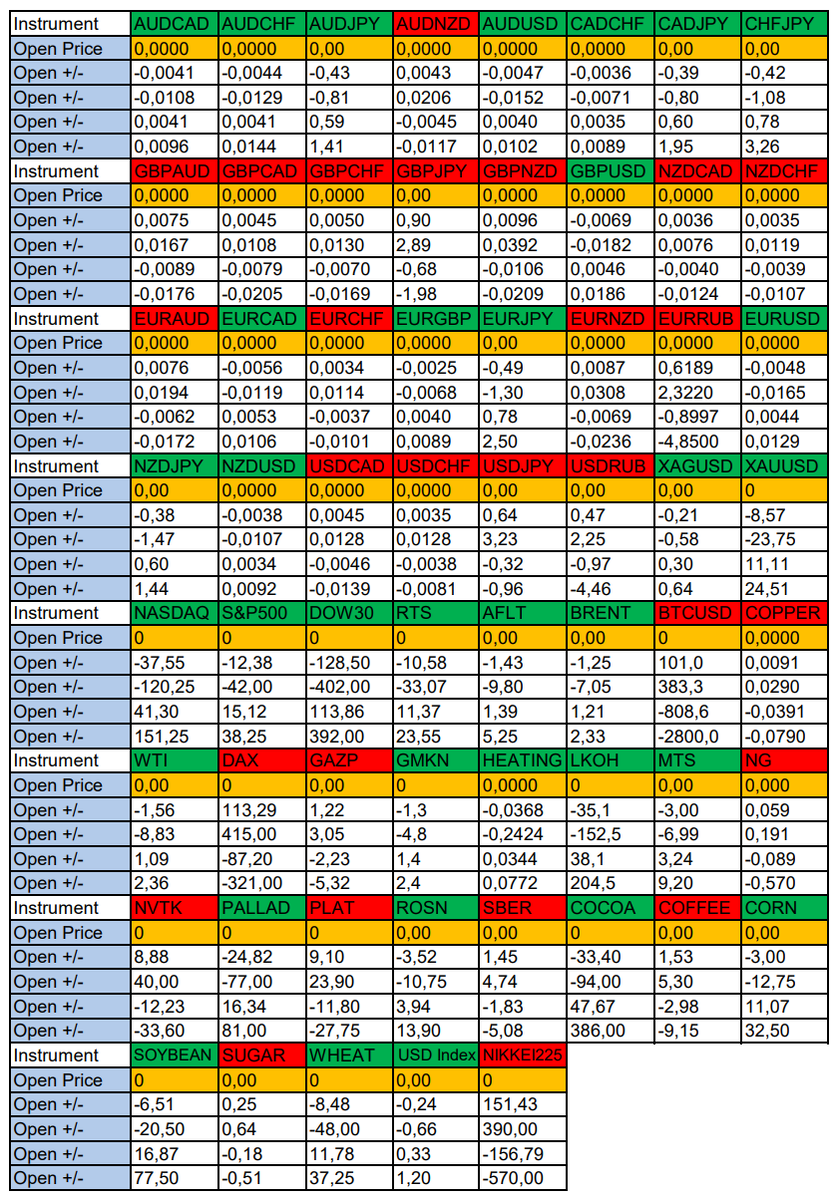 Здравствуйте Уважаемые трейдеры! С Вами снова Александр Борских. Подготовил для Вас свежую информацию. Очередные сезонные тенденции на Среду 18 Июня 2025 по основным мажорам финансовых рынков. Весь перечень анализируемых активов указан ниже в общем количестве 61 инструмента. Здесь Вы найдете активы рынка Форекс, популярные активы Московской биржи, не менее популярные активы Чикагской биржи СМЕ и мажор криптовалютного сегмента - Биткоин, за которым следуют все альткоины. Первый блок информации с зонами лимитных покупок и продаж. Данная информация включает в себя не только статистический показатель волатильности каждого актива, но и ближайшие опционные страйки с учетом премий за риск (Для верных расчетов рекомендуется просмотреть теоретическое видео в свободном доступе - Как использовать блок сезонности). А теперь сам блок информации №1: Второй блок информации с направленным вектором движения и вероятностями (внимательно обращаем внимание на цену открытия каждого актива. Обязательно для