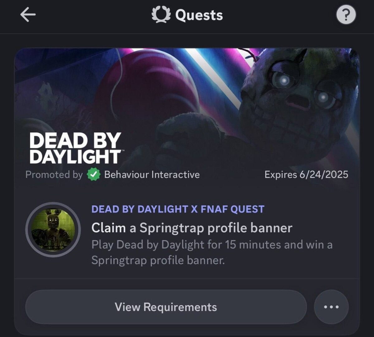 ‼️ Разработчики уже работают над решением проблемы, из-за которой задание в Discord на получение баннера со Спрингтрапом отображается только