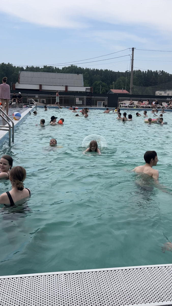 Аквакомплекс «Пляж» 🏖️ Удивительное место прям в городе, не нужно никуда долго ехать 🚘 Вход 400 р на час за человека. Мы брали билет сразу на 2 часа, поэтому цена была выгоднее - 700 р за человека. Цены общие, детских билетов нет. Только бесплатно детям до 3 лет. На территории есть 2 бассейна: взрослый и детский. Вода подогревается. Вокруг бассейнов стоят лежаки, где можно отдохнуть, позагорать. Так же есть ещё надувной детский аквапарк. В течении дня проходят различные развлечения для детей: анимация, квесты, игры на воде, пенная дискотека, мастер классы. На территории так же есть баня, душевые, раздевалки с шкафчиками под замком. Всё для комфортного отдыха