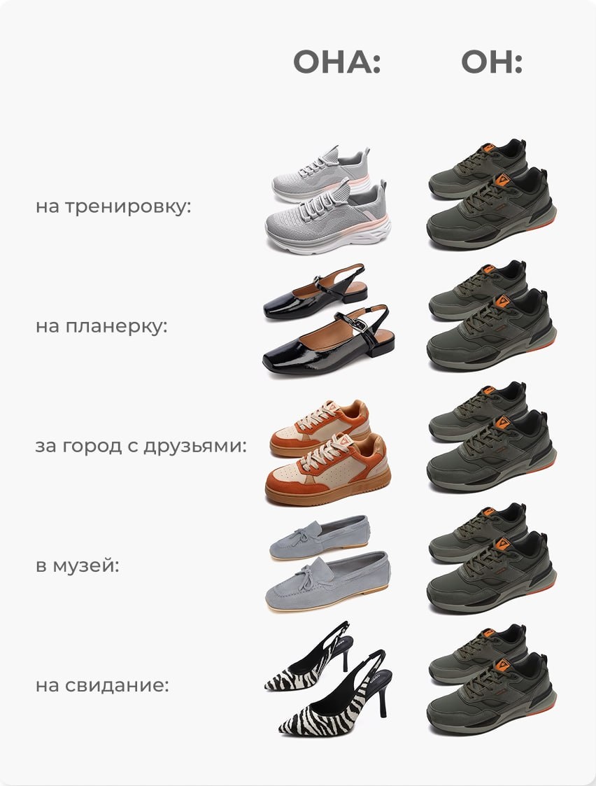 Этим мемом мы намекаем на то, что пора разнообразить мужской обувной гардероб😉