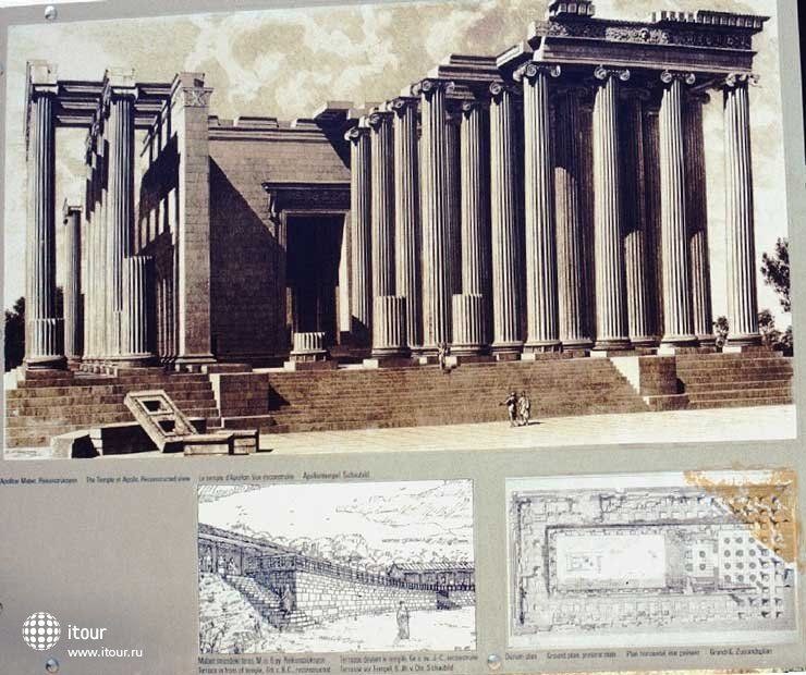 Интересно, что некоторые храмы, посвящённые небожителям, изначально проектировались без наличия крыш. Есть предположение, что храм Аполлона в Дидиме относился к таким. #витрувий 1.2.5 Благообразие есть безупречный вид сооружения, построенного по испытанным и признанным образцам. Оно вырабатывается по установленному обычаю, или же по природе. Или установлению — когда храмы Юпитеру Громовержцу, Небу, Солнцу и Луне воздвигают открытыми, или гипетеральными, ибо и образы и проявления этих божеств обнаруживаются нам в открытом и сияющем небе. Храмы Минерве, Марсу и Геркулесу делают дорийскими, ибо мужество этих божеств требует постройки им храмов без прикрас. Для храмов Венеры, Флоры, Прозерпины и нимф источников подходящими будут особенности коринфского ордера, потому что, ввиду нежности этих божеств, должное благообразие их храмов увеличится применением в них форм более стройных, ветвистых и украшенных листьями и завитками. А если Юноне, Диане, Отцу Либеру и другим сходным с ними боже