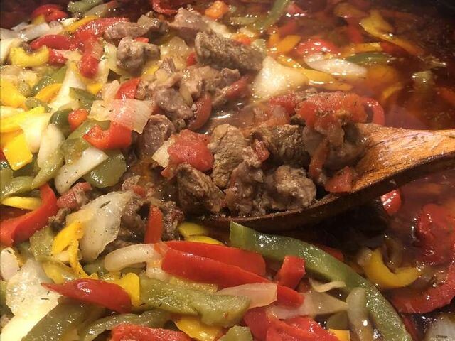 Тава Тава - любимое блюдо в Турции. Они готовят его великолепно, и этот рецепт я сделал настолько близким к нему, насколько смог. Лучший способ есть это блюдо - завернуть его в ближневосточный плоский хлеб, который можно купить в местной пекарне или в отделе замороженных продуктов. ⌛ Подготовка: 15 мин. ⏰ Приготовление: 1 час. 0 мин. 🍴 Количество: 4 порции Ингредиенты ✅ ¼ кг говяжьего тушеного мяса, порезанного на кусочки размером 1/5.00 см ✅ 1 маленькая красная луковица, порезанная кубиками ✅ 1 средний зеленый болгарский перец, очищенный от семян и порезанный кубиками ✅ 2 свежих помидора, порезанных кубиками ✅ 1 зеленый перец чили, очищенный от семян и порезанный кубиками ✅ ½ чайной ложки пасты чили Инструкция приготовления 1. Разогрейте духовку до 175 градусов C 2. Положите говядину в стеклянную форму для выпечки объемом 1 литр Смешайте красный лук, зеленый перец, помидоры и, если используется, перец чили. Вмешайте пасту чили вручную. 3. Готовьте в предварительно разогрето